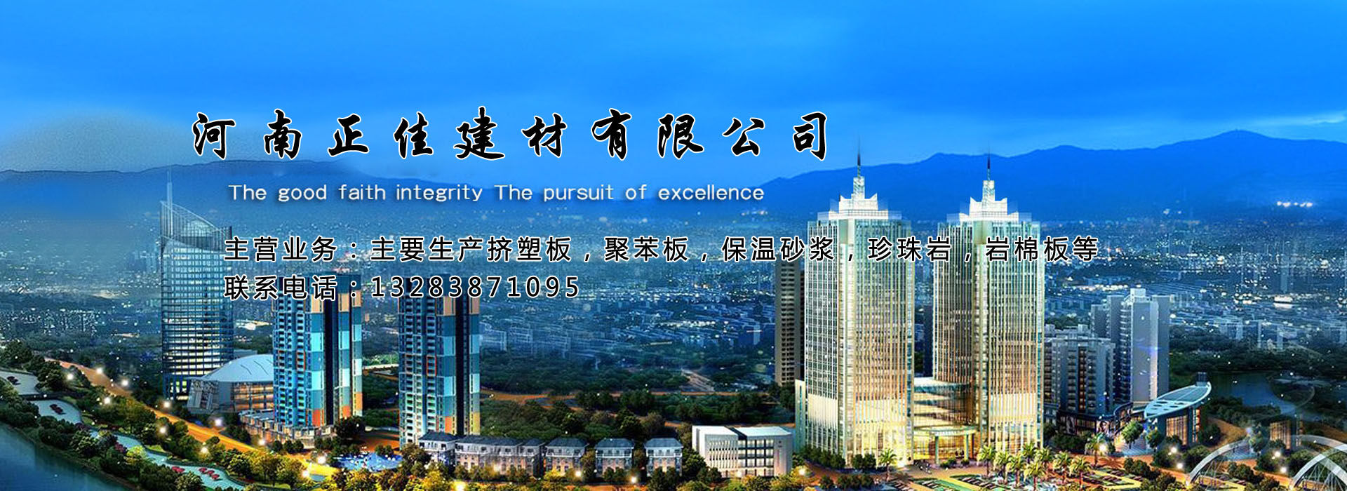 是董事會領導下生產經營擠塑板保溫材料:駐馬店擠塑板 駐馬店地暖板 新鄉擠塑板 新鄉地暖板 平頂山擠塑板,平頂山地暖板,平頂山保溫板,駐馬店外墻擠塑板,駐馬店墻體擠塑板,駐馬店地暖擠塑板,駐馬店擠塑板報價,駐馬店擠塑板行情,駐馬店擠塑板廠,駐馬店擠塑板廠家直銷。EPS聚苯板,泡沫板,保溫板,珍珠巖,巖棉板,粘接砂漿,抹面砂漿,抗裂砂漿,無機保溫砂漿,地暖材料等新型墻體保溫材料。外墻保溫、保溫工程 : 質量好、規格全、價格低。 誠信合作、優選正佳保溫 鄭州正佳以建設成為節省資源、保護環境、堅持可持續發展的高新 科技企業為目標。公司已發展成為集生產、銷售、施工為一體的一體化公司。公司本著“顧客就是上帝”的原則,以“誠實守信,熱情周到”的服務理念贏得了廣大客商的信任。