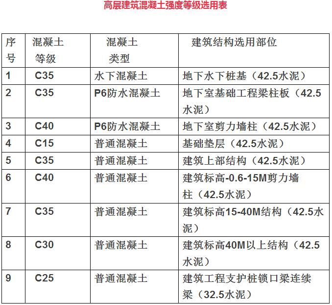 ④C40~C45——用于預應力鋼筋混凝土構件、吊車梁及特種結構等,用于25~30層;