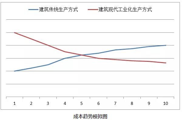 傳統生產方式的成本上升與工業現代化生產方式的成本下降,這是不可扭轉的發展趨勢!兩者終將在某個時間點相遇,當工業現代化生產方式下的成本低于傳統生產方式時,也是建筑工業現代化生產方式大面積取代建筑傳統生產方式的時間點。