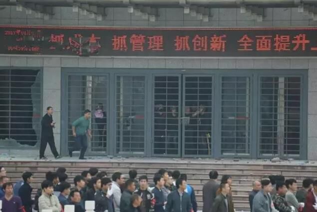3月8日凌晨,袖纏紅護身符布條、手戴白手套,600多人拿著棍棒聚集在濟南104國道山東山水水泥集團有限公司總部門口,強行沖進大門,對辦公樓的幾個門進行“砸打”,還從廠區強行把裝載機開上辦公樓門口回廊對辦公樓大門進行蠻擊。此時,集團辦公樓里山水高管和員工只有20余人,多人在防衛中被外邊投擲的石塊砸中受重傷,躺在醫院。