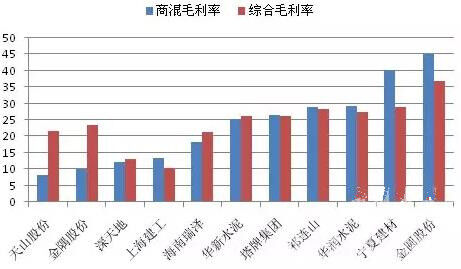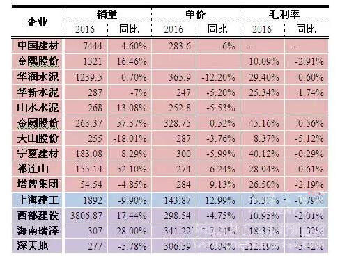 上表中14家企業2016年混凝土銷量共計1.78億方,占全國總銷量比例9.92%,與去年同期相比占比下降0.26個百分點。從混凝土售價來看,13家企業中10家價格出現同比下滑;12家企業中毛利率下滑的有7家,毛利率上漲的5家企業漲幅較小。