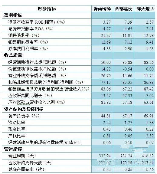 西部建設、深天地的資產負債率復合行業平均水平,海南瑞澤負債率較低,償債風險偏低,同時其他償債指標也顯示海南瑞澤具有較低的債務風險,但由于經營活動產生的現金凈流量為負值,因此主營業務正常經營的償債能力較弱,有待提升業務正常經營的穩定性和盈利能力。