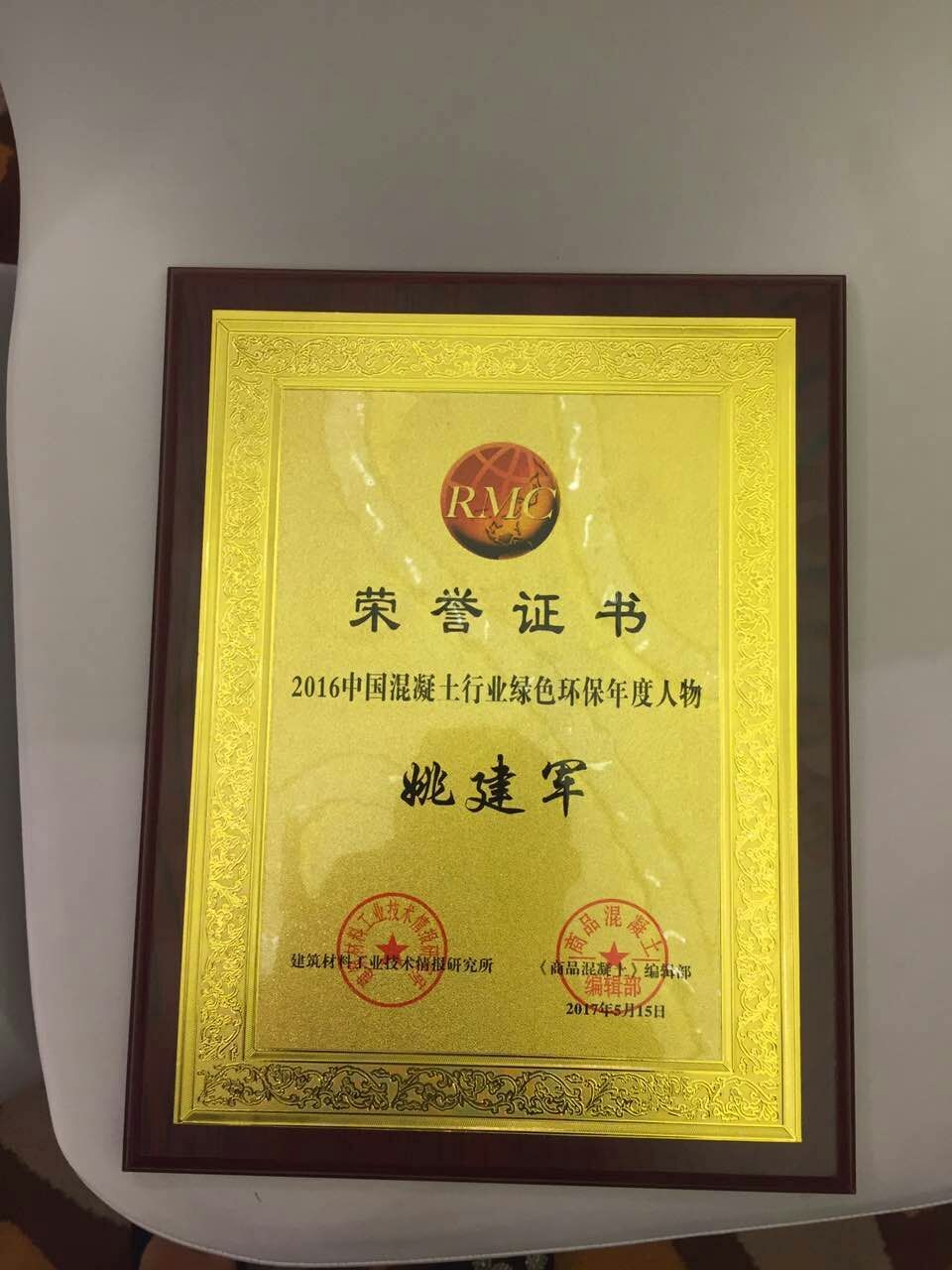 作為中國工程機械工業協會混凝土機械分會會員的百濾得機械制造有限公司參加了此次盛會,公司總經理姚建軍獲得2016中國混凝土行業綠色環保年度人物證書。