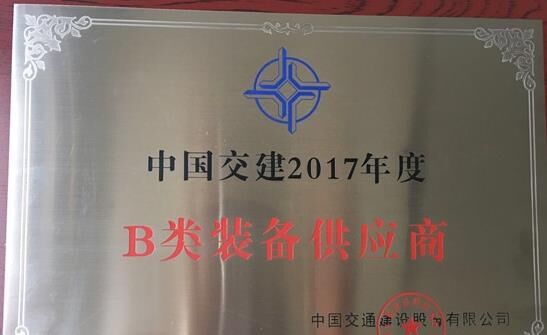 圓友重工榮獲“中國(guó)交建2017年度B類裝備供應(yīng)商”