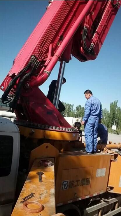 3、泵車就位后,應支起支腿并保持機身的水平和穩定。當用布料桿送料時,機身傾斜度不得大于3°。