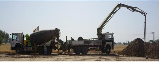 1臺(tái)47米泵車、5臺(tái)29米布料機(jī)、5臺(tái)80拖泵同時(shí)參與施工卡拉奇核電項(xiàng)目