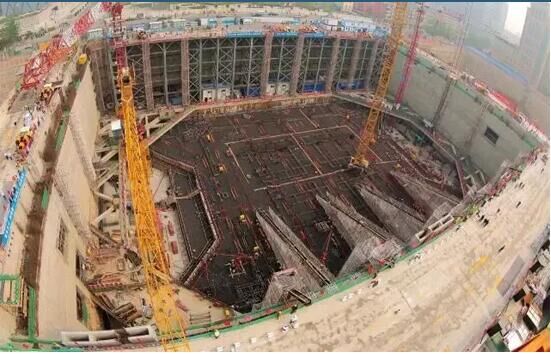 2013年中國尊項目建設啟動,嚴峻的考驗也隨之而來。據介紹,“中國尊”項目的基坑深度38米,局部達到40米,是中國未見、全球罕見的超深民用建筑基坑,創中國超高層建筑基坑深度之最,施工方需要在100小時內不間斷完成5.6萬立方米大體積底板混凝土澆筑工作。