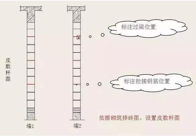 ( 2 )施工時在墻體轉角處立好皮數桿或利用混凝土墻柱做皮數桿,桿上標明塊層、灰縫、窗臺板、門窗洞口、過梁、圈梁、預制件等的高度及位置,并應隨時檢查其準確性。