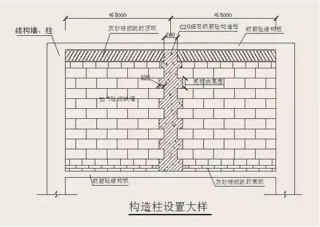 構造柱的截面尺寸不應小于(墻厚×200mm),混凝土強度等級不應低于C20。
