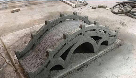 10月18日,來自中國河南的一個建筑3D打印團隊,發布了他們最新3D打印的石拱橋,材料為混凝土。據介紹,這座3D打印的石拱橋的長140厘米,寬58厘米,高50厘米,使用了281千克的混凝土,共打印了59層。
