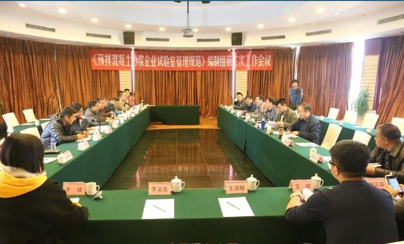 山東省工程建設標準《預拌混凝土、砂漿企業試驗室管理規范》編制組第二次工作會議于2017年10月31日下午在煙臺召開。會議由山東省建筑業協會副會長兼混凝土分會會長王守憲主持,煙臺市建筑工程質量監督站林世樂站長到會并致歡迎詞,本次會議有參編單位的30余位代表參加。