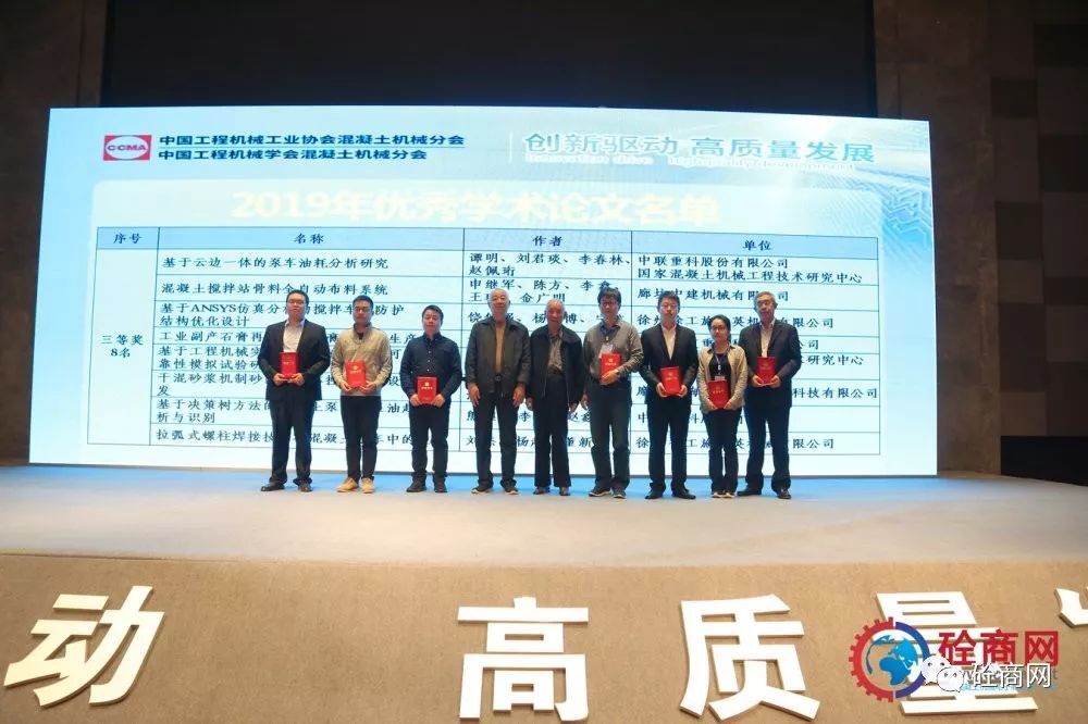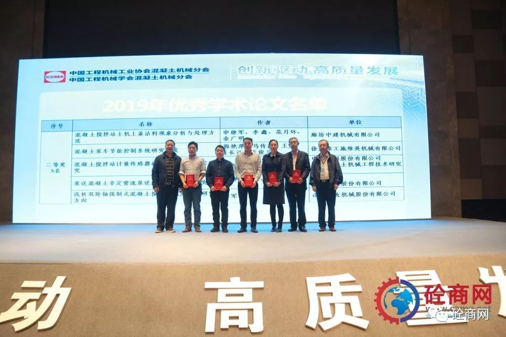 中國工程機械工業協會混凝土機械分會符忠軒會長以及中國工程機械工業協會混凝土機械分會顧問易君女士為優秀論文一等獎獲得者頒發獲獎證書;