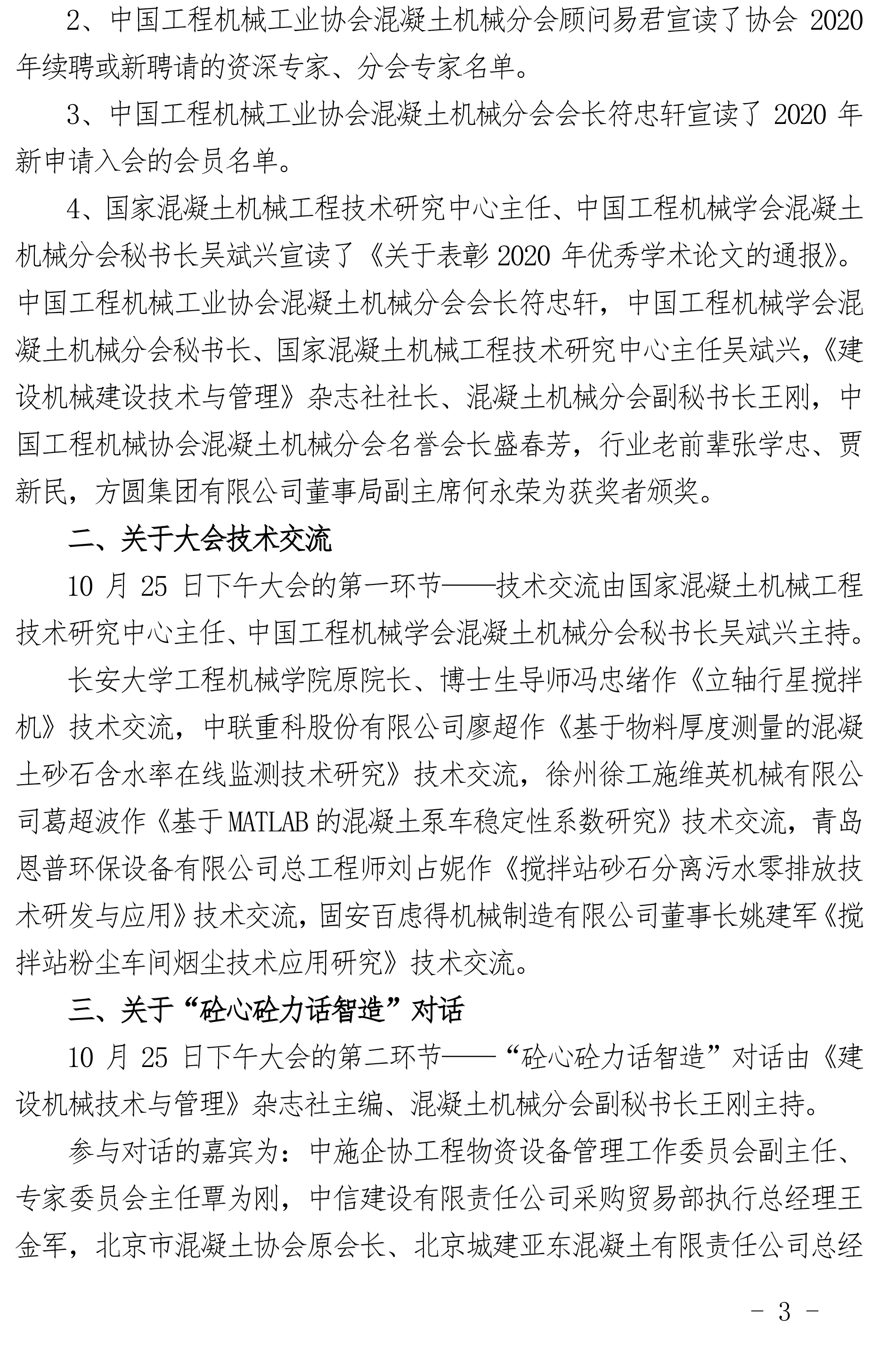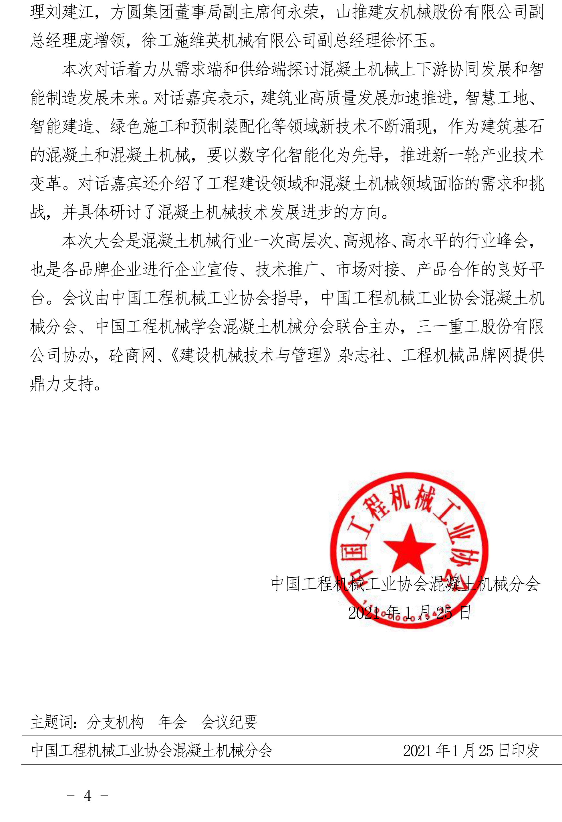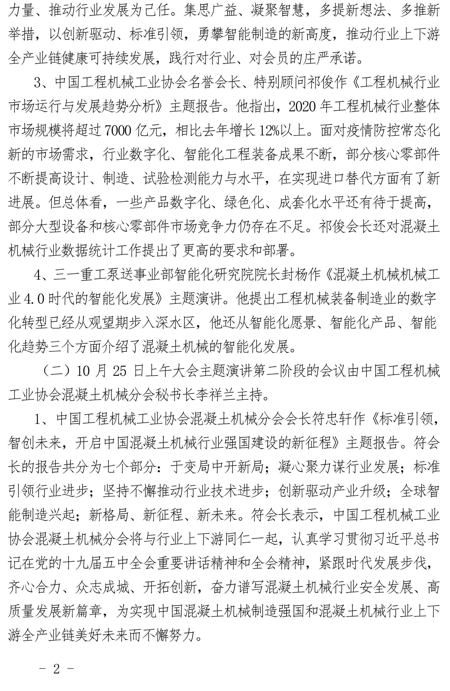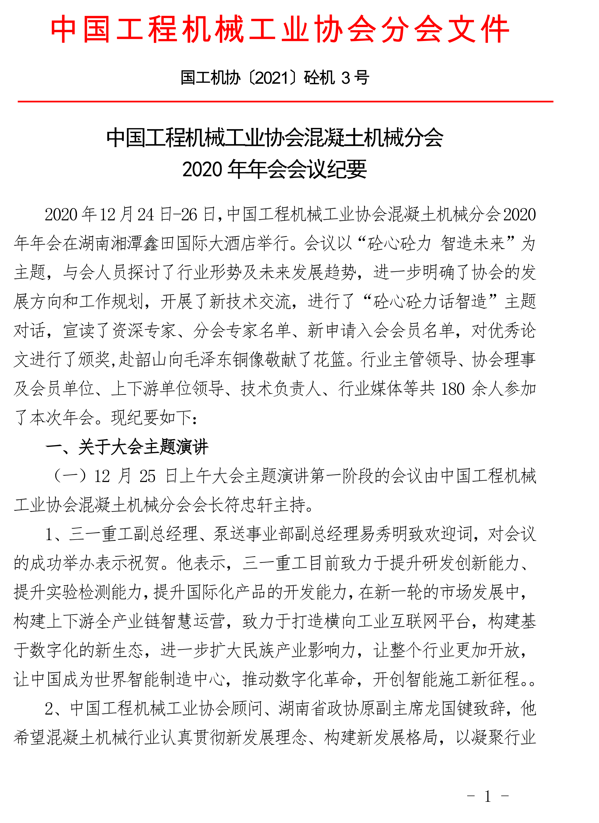中國工程機械工業協會混凝土機械分會 2020年年會會議紀要