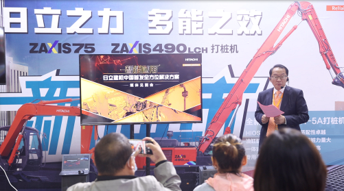 除了劍指未來的重磅產品和解決方案,日立建機還展示了在中國市場廣受歡迎的兩款新品——ZX490LCH-5A打樁機和專為土方作業用戶打造的ZX75-5A小型液壓挖掘機。ZX490LCH-5A傳承日立打樁機的家族品質,HIOSⅢ液壓系統和雙泵合流系統帶來人機合一的高效體驗,強化型動臂油缸可加強打樁、拔樁的力量,適用于各類市政基坑支護等大中型工程。
