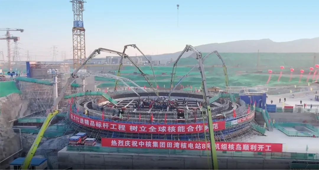 2月25日,田灣核電8號機組核島反應(yīng)堆廠房筏基底板開始澆筑第一罐混凝土,標(biāo)志著8號機組主體工程開工,這是2022年我國開工建設(shè)的首臺核電機。核電工程建設(shè)要求嚴(yán)格,施工設(shè)備、建設(shè)過程遵循極高標(biāo)準(zhǔn),尤其是混凝土生產(chǎn)制備和輸送澆筑,對于計量精度,溫度控制和泵送連續(xù)性要求極高,不僅要求設(shè)備供應(yīng)商有過硬的產(chǎn)品技術(shù),還需要優(yōu)良的穩(wěn)定性以及細(xì)致全面的服務(wù),中聯(lián)重科混凝土泵車當(dāng)仁不讓,全套包攬泵送施工。目前,我國自主品牌混凝土機械已經(jīng)完全替代進口,擔(dān)負(fù)起核電施工重任。