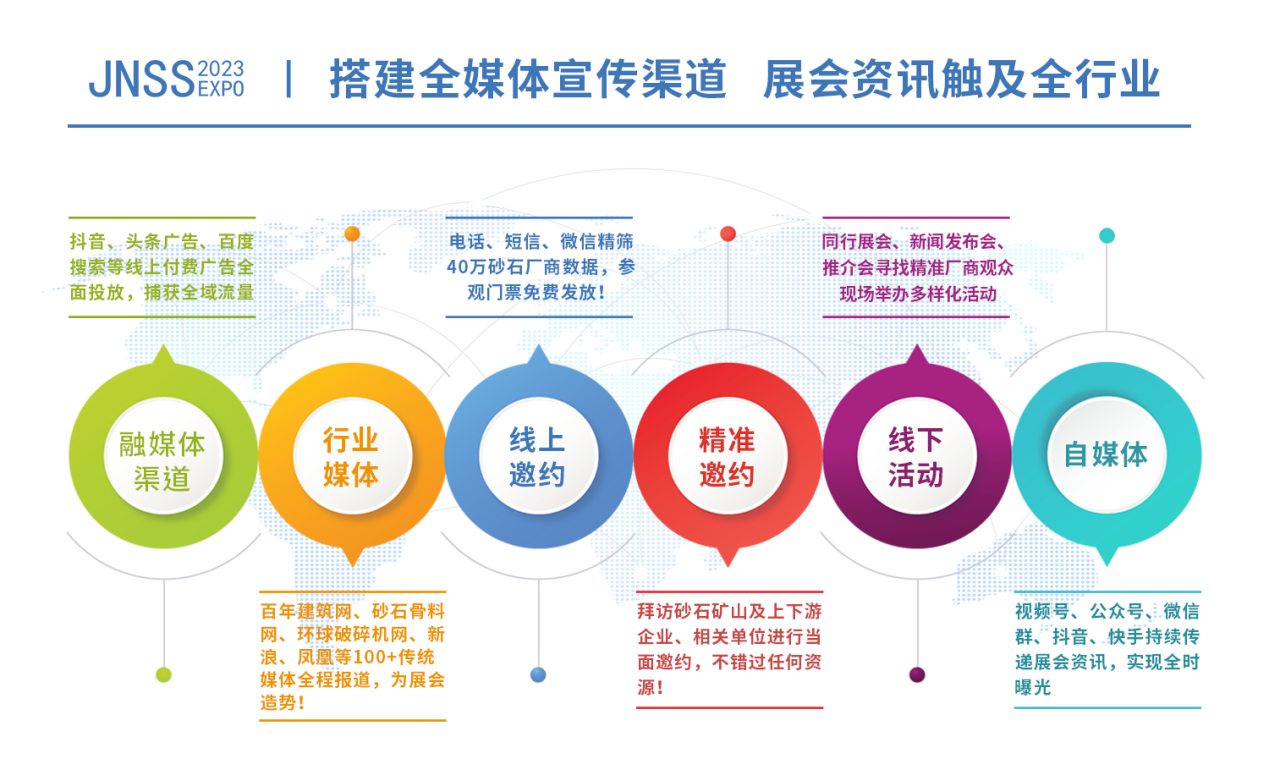 2023濟南砂石招展將持續加強宣傳力度,匯集線上線下、全方位、多角度優質買家,助推展商品牌打造與貿易合作。