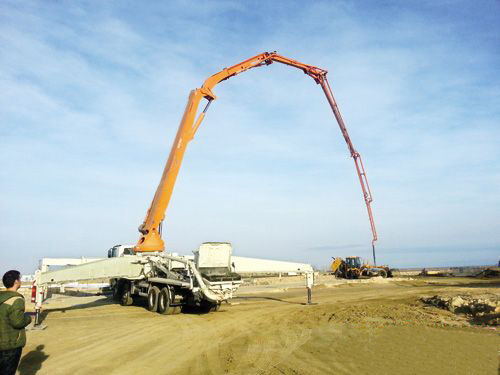 中聯重科52米臂架泵車于2013年12月入駐阿塞拜疆,當地氣候十分寒冷,作為首臺入駐阿塞拜疆的中聯泵車,本次交付具有標志性意義。中聯重科52米臂架泵車擁有智能仿生6RZ專利、高效大排量、智能溫控節能等技術,通過泵送系統、臂架長度和底盤的科學匹配,最大泵送方量達200 m3/h,適合本次大方量工程要求。在國內外各種復雜的工地條件上,其多臂復合運動控制、全行程控制、單邊支腿同步操作等技術大大提高了泵送效率,深受客戶青睞。