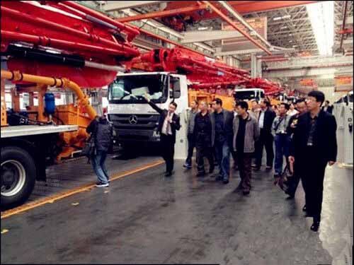 25日上午,考察團(tuán)全體成員在三一重工一號(hào)會(huì)議室召開(kāi)了2014年度山東省混凝土協(xié)會(huì)會(huì)長(zhǎng)工作會(huì)議,三一重工泵送營(yíng)銷公司副總經(jīng)理王暾先生致歡迎詞,會(huì)議對(duì)2014年全年工作進(jìn)行部署、攪拌站評(píng)優(yōu)等問(wèn)題展開(kāi)討論。12點(diǎn)40分,考察團(tuán)參觀了三一產(chǎn)業(yè)園,一進(jìn)廠區(qū),一排排鮮紅锃亮的混凝土泵車像是巨人般列隊(duì)歡迎,亞洲最大的花園式18號(hào)廠房、一塵不染的總裝車間、豐富多彩的企業(yè)文化、振奮人心的發(fā)展前景,讓考察團(tuán)領(lǐng)導(dǎo)班子頻頻點(diǎn)贊,感嘆三一不愧為世界級(jí)工程機(jī)械制造商,充分肯定了三一重工在混凝土行業(yè)中的龍頭地位。參觀后,考察團(tuán)集體合影留念。