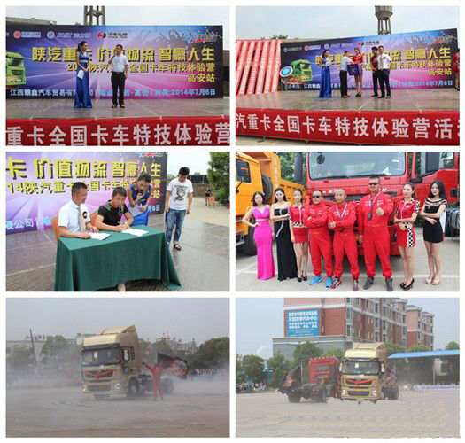 在南昌、九江、上饒、高安地區舉辦的4場陜汽重卡卡車特技體驗營,參與人數眾多,配套廠家、改裝廠、渠道經銷商等積極參與。除法士特南昌辦、濰柴南昌辦全程參與外,各地區主要配套委改廠如湖北合力、湖北楚勝等也積極參加,渠道主力經銷商江西國通、九江重型、江西陜汽、江西贛鑫、新余金海也全程參與,主動交流溝通。另外,還包括各保險公司、銀行、當地政府相關部門也都出席或參與。