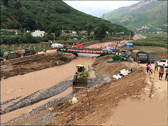 柳工機械在云南魯?shù)橹貫膮^(qū)開挖生命通道