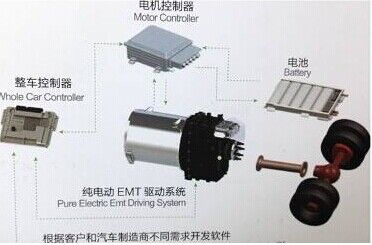 動(dòng)力總成采用電驅(qū)動(dòng)機(jī)械式自動(dòng)變速器,采用四檔自動(dòng)變速傳動(dòng),無(wú)離合器,無(wú)機(jī)械式同步器,利用電驅(qū)動(dòng)主動(dòng)同步代替?zhèn)鹘y(tǒng)的同步器摩擦被動(dòng)同步,純EMT相比傳統(tǒng)自動(dòng)變速器AMT具有高效率和低成本優(yōu)勢(shì)。
