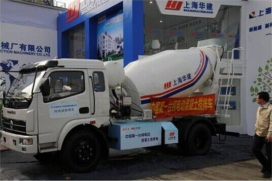 上海華建2014款東風(fēng)底盤(pán)純電動(dòng)4m3攪拌運(yùn)輸車,可以名符其實(shí)的成為中國(guó)第一輛純電動(dòng)混凝土攪拌運(yùn)輸車。一次充電可行駛40公里,快充過(guò)程30分鐘即可充滿。