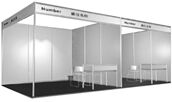 長(zhǎng)3米x寬3米x圍板高2.5米,含1張咨詢臺(tái)、2把椅子、1個(gè)220V電源插座、公司楣板;