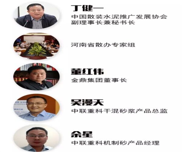 此次方案的參與實施者對有中國散裝水泥推廣發展協會副理事長兼秘書長丁健一;河南省散辦專家組;金鼎集團董事長董紅偉;中聯重科干混砂漿產品總監吳漫天;中聯重科機制砂產品經理余星