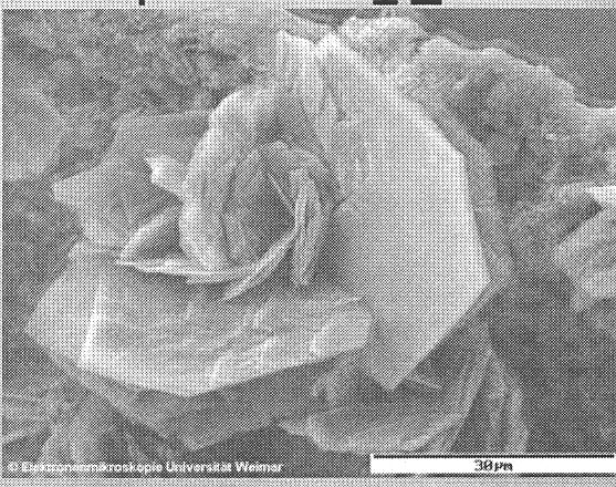 事實上,這是電子顯微鏡下混凝土中 monosulfate (AFm phase, Alumina ferric oxide monosulfate phase)的照片。