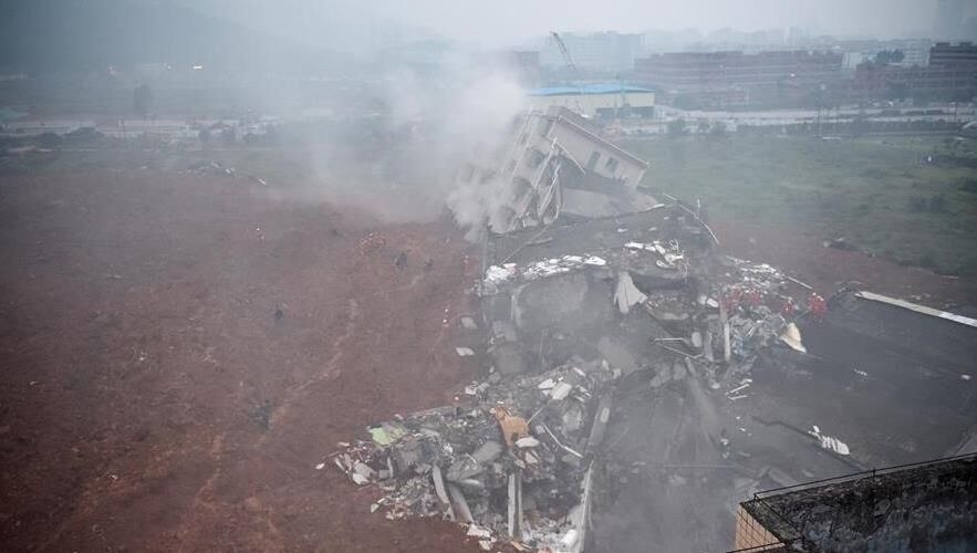 12月20日11時40分許,廣東深圳市光明新區(qū)鳳凰社區(qū)恒泰裕工業(yè)園發(fā)生山體滑坡,附近西氣東輸管道發(fā)生爆炸。截至19時,已導致22棟民宅和廠房被埋,現(xiàn)場塌方面積達10多萬平方米,造成3人受傷,另有27人失聯(lián)。