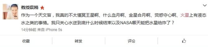 吐槽的人不少。人家很坦白,上來就承認確實不懂這些,但是不懂就不能關注了么?我不關心火星,我關心關心水星行了吧?這特么占星上的水逆也太折騰人了吧,NASA你能先把水星給炸了么?