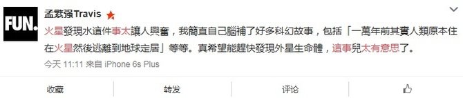 這些人里有多少平時就是天文愛好者,不好說。能確定的是,其中肯定有不少特意來附庸風雅的“小清新”,這年頭要刷逼格,也只有靠這些高大上的東西了。那么,咱就來看看,各種懂的和不懂的同學在火星這事上,都有啥想說的?
