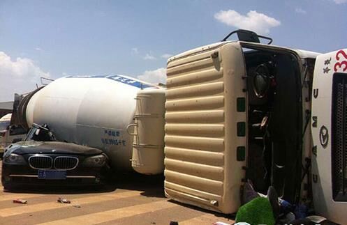 4月8日中午,昆明市經(jīng)開區(qū)景明北路與陽(yáng)春大道路口發(fā)生一起交通事故:一輛混凝土攪拌車在行駛中與一輛寶馬7系轎車發(fā)生碰撞后失控側(cè)翻,寶馬車的整個(gè)左半邊被全部壓垮。經(jīng)現(xiàn)場(chǎng)交警和消防官兵全力救援,寶馬車駕駛員被救出,確定已不幸身亡。