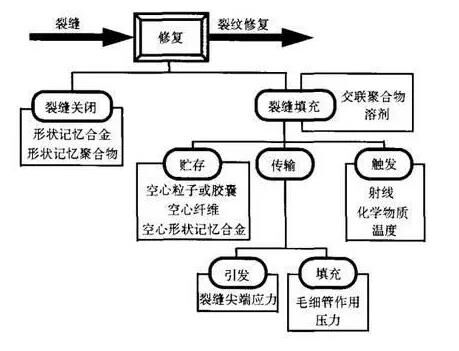 仿生自愈合法是一種新的裂縫處理方法,它模仿生物組織對受創傷部位自動分泌某種物質,而使創傷部位得到愈合的機能,在混凝土的傳統組分中加入某些特殊組分(如含粘結劑的液芯纖維或膠囊),在混凝土內部形成智能型仿生自愈合神經網絡系統,當混凝土出現裂縫時分泌出部分液芯纖維可使裂縫重新愈合。