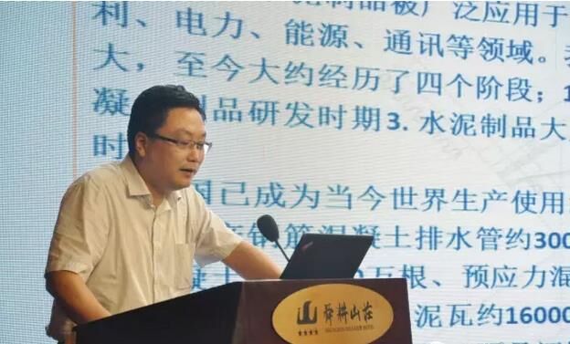 ▼ 中國混凝土與水泥制品工業協會排水管專家褚建中做“綜合管廊及海綿城市的預制混凝土構件”的演講;