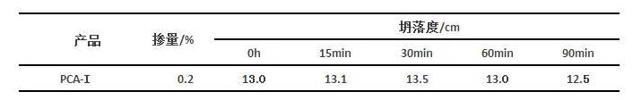 該項目要求混凝土0-90min混凝土坍落度在120±20mm范圍內,混凝土具有較好的泵性,且后期不泌水、不離析。典型的中低坍落度混凝土保坍。