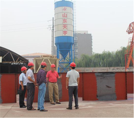 9月4日,中國工程機械工業協會混凝土機械分會符忠軒一行參觀考察了山東天宇建設機械股份有限公司,受到了該公司董事長姜山、總經理李同世、生產廠長王金忠等負責人的熱烈歡迎并陪同符會長參觀考察了公司生產現場和分體式水泥倉生產線及準備出口的混凝土攪拌站等產品。