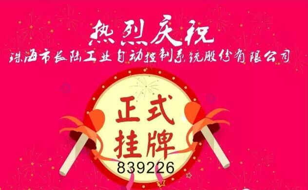 9月13日,珠海市長陸工業自動控制系統股份有限公司在全國中小企業股份轉讓系統(簡稱“新三板”)正式掛牌,證券簡稱為“長陸工控”,證券代碼為“839226”。