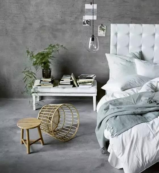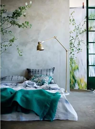 被水泥包裹的臥室,本來是很生硬冰冷的,綠植與床品的巧妙搭配,讓這個空間煥發出大自然的氣息。