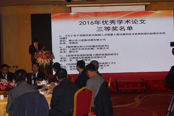 晚宴進行過程中,中國工程機械工業協會混凝土機械分會符忠軒會長上臺宣讀了《關于2016年學術論文評獎結果的通報》,并進行了優秀論文頒獎活動。