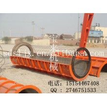 懸置在機架上的輥軸穿過管模,在電機驅動下,傳動軸帶動輥軸以規定速度旋轉。在輥軸與管模兩端擋圈摩擦力作用下,管模與輥軸作同方向旋轉。此時,由人工或機械投入的混凝土拌合物在旋轉離心力作用下鋪在管模內壁,當混凝土拌合物料層厚度超過擋圈高度后,即開始受到輥軸與管模內擠壓。隨著料層厚度的增加,輥軸對混凝土的壓力越大,并逐漸使混凝土拌合物達到預期的密實度。在輥壓成型過程中,混凝土拌合物除受到輥壓力作用外,還同時受到管模旋轉造成的離心力和管模由于投料均勻性影響而形成的自身振動力的作用。輥壓成形原理即是通過上述工藝過程和三種力的組合作用(其中主要是輥壓力),使混凝土拌合物密實而形成管模