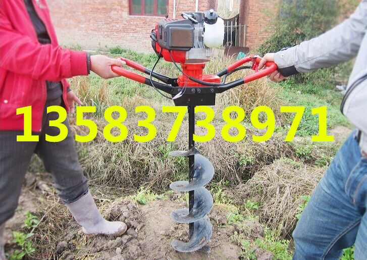 地鉆由小型通用汽油機,齒輪箱及特殊設(shè)計的鉆具組成.適合在土地,凍土,冰層上打孔.廣泛用于園林,種植,植樹,物探,道路建設(shè)等領(lǐng)域. 2.鉆頭采用錳鋼合成更加的堅硬。對硬土質(zhì),超硬土質(zhì),粘土,凍土等都能工作。 3.地鉆可根據(jù)樹種,選配多種規(guī)格的鉆頭,以滿足用戶需要。 4.地鉆能夠讓人們從繁重的體力勞動解放出來,廣泛應用于植樹造林,栽種果林、籬笆、及秋季給果樹施肥等。適合各種地形,效率高,便于攜帶及野外田地作業(yè)。 5.地鉆既可以單人操作,又可雙人操作,經(jīng)濟實用。 注意事項:1.使用正品2T(二沖程)FC級機油,嚴禁使用4T(四沖程)機油。 2.嚴禁使用純汽油。 3.嚴格按25比1的比例兌油. 4.新機器不可高速使用,請低速磨合3小時。 5.嚴禁在高速的時候突然關(guān)停發(fā)動機,否則會使下次開機啟動困難。 6.感覺機器震動異常,請立即停機檢查,是否破損,松動,偏心。 7.嚴禁在有亂石堆的草地上使用。 8.鉆頭有嚴格的尺寸限制,嚴禁私自改裝或使用增大號鉆頭. 9.每工作一段時間清除火花塞、消音器積碳,清洗空氣濾清器,向齒輪箱加注黃油。 10.遇到問題自己無法解決的,不要私自拆裝。 11.機器長時間不用時,應該將剩余的燃油倒出,然后發(fā)動機器將化油器內(nèi)的燃油全部燃燒干凈。 12.想讓機器運轉(zhuǎn)更穩(wěn)定,壽命更長請經(jīng)常保養(yǎng)。 安全事項: A.人身安全:嚴禁在室內(nèi)添加汽油,嚴防火災;機器運行時,嚴禁手腳靠近鉆頭;清理或檢查機器時必須停機。 B.機器安全:地鉆起動前必須清理草坪上的雜物,確保機器安全運轉(zhuǎn)。