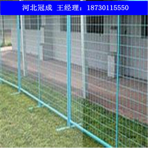 臨時護欄網,又可以稱為移動圍欄,臨時隔離欄,移動式安全圍欄網 臨時護欄分類臨時護欄從工藝上來看可以分為兩種:1.焊接網臨時護欄;2.編織網臨時護欄。 1.焊接網臨時護欄網 主要規格如下 絲徑:3.6-6mm 孔徑:50X200mm 75X150mm 80X160mm 100X200mm等 網片高度:1.0-2.0m 網片寬度:2.0-3.0m 立柱:方形柱 圓形柱 桃形柱 新型防盜柱 表面處理:熱度鋅、 浸塑、 噴塑、 噴砂、 靜電噴涂等。 顏色:以綠色為主(黃色,藍色等) 以上規格,顏色等也可根據客戶需要加工定做。 2.編織網臨時護欄 主要規格如下 絲徑:1.5-4mm 孔徑:50X50mm 60X60mm 70X70mm 等 網片規格:1mX2m 1.5mX2m 2mX2.5m 2mx3m等。 立柱:方形柱 圓形柱 表面處理:PVC包塑 熱鍍鋅 顏色:主要以綠色,藍色為主。 以上規格可根據客戶需求加工定做。 臨時護欄網是適用臨時隔離,臨時隔斷,臨時圈圍,是靈活性極強的產品。 臨時護欄網主要采用可拆接構件將護欄主片與底座或防護柱進行標準連接,等特定需要的時候可輕松拆除,進行移動安裝。