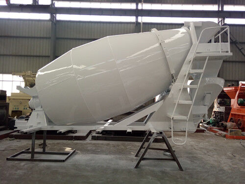 攪拌筒:該車型所采用的攪拌筒形式是一種應(yīng)用較為普遍的結(jié)構(gòu)形式,攪拌筒采用梨形結(jié)構(gòu),其清洗用水和運輸過程中視需要補(bǔ)充加入的拌合水,均由攪拌筒頭部進(jìn)料口處注入筒內(nèi)。