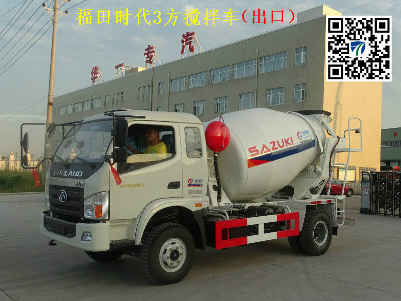 福田時代3方混凝土攪拌車:品牌:福田,底盤介紹:福田時代駕駛室,玉柴115馬力帶中冷,9噸橋,5檔帶副,250大梁,8.25-16尼龍胎,3400軸距。上裝配置:罐體容積:3立方,科翼減速機、美國SALI油泵、馬達,新鄉振華散熱器,帶氣壓供水裝置。