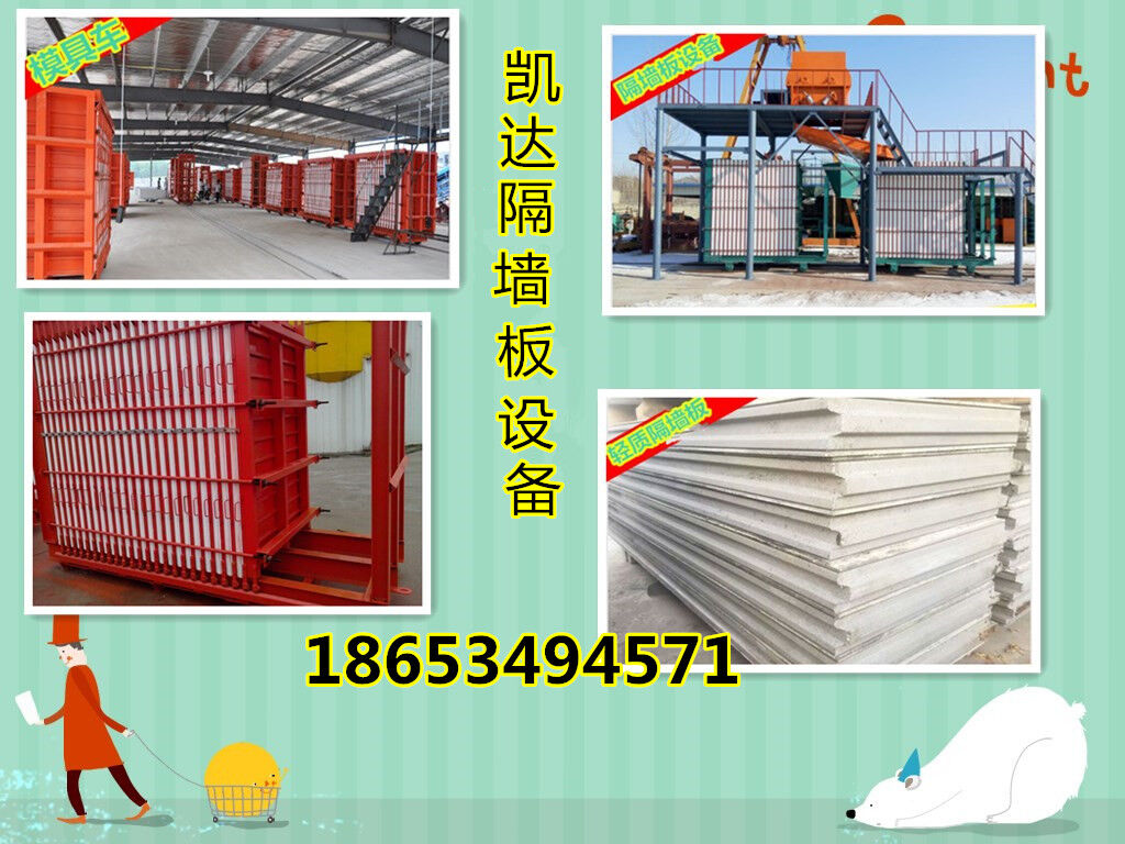 聯系人;劉經理18653494571(微信同步)隔墻板設備(隔墻板機,隔墻板生產線)的生產工藝簡單,設備自動化程度高,勞動強度低,流水線作業(yè),生產過程無嗓音無三廢排放。