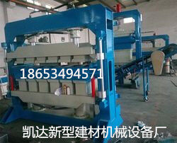 龍傳送會(huì)破壞珍珠巖顆粒。4:自動(dòng)碼垛機(jī);壓板機(jī)壓板后碼垛機(jī)自動(dòng)把板材碼垛,進(jìn)入烘干房或挪走自然養(yǎng)護(hù)。5:以上設(shè)備都是為壓板機(jī)服務(wù)的,所以所有輔助設(shè)備的用時(shí),都小于壓板機(jī)的用量。這樣理論上的產(chǎn)量和實(shí)際產(chǎn)量相等。6:壓板機(jī);20秒一次行程,一次性程壓制10塊板材,每分鐘壓制30塊板材。上下油缸內(nèi)安裝有強(qiáng)制限位器,這樣才能保證生產(chǎn)的