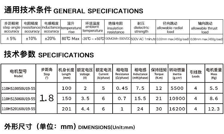 歸屬行業(yè):兩相1.8°混合式步進(jìn)電機(jī)110系列步進(jìn)電機(jī)