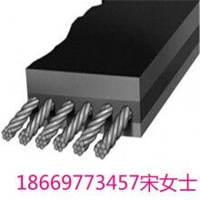 防撕裂鋼絲繩芯橡膠輸送帶該輸送帶在鋼絲繩芯上面(或上下)設置了橫向均勻排列的高延伸鋼絲繩或高強力高延伸化纖線繩作為抗撕裂層,抗撕裂層垂直于輸送帶運行方向。當輸送帶輸送硬質尖銳物料時,抗撕裂層可阻擋尖銳硬物刺穿,一旦刺穿后還可產生足夠抵抗尖銳硬物撕裂膠帶的阻力,從而有效防止輸送帶撕裂現象發生.