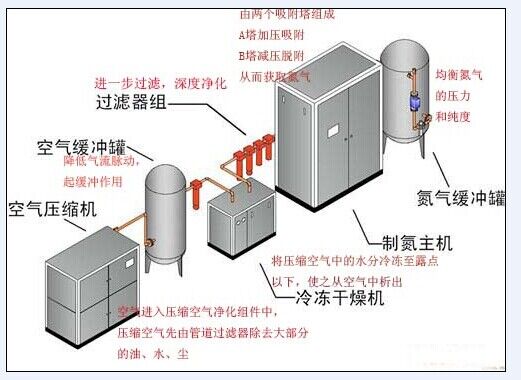 制氮裝置:以空氣作為原料,以碳分子篩作為吸附劑,運用變壓吸附原理,利用碳分子篩對氧和氮的選擇性吸附而使氮和氧分離的方法,通稱PSA制氮。操作維護方便、運行成本較低、裝置適應性較強等特點,故在1000Nm3/h以下制氮設備中頗具競爭力,越來越得到中、小型氮氣用戶的歡迎,PSA制氮已成為中、小型氮氣用戶的首選。